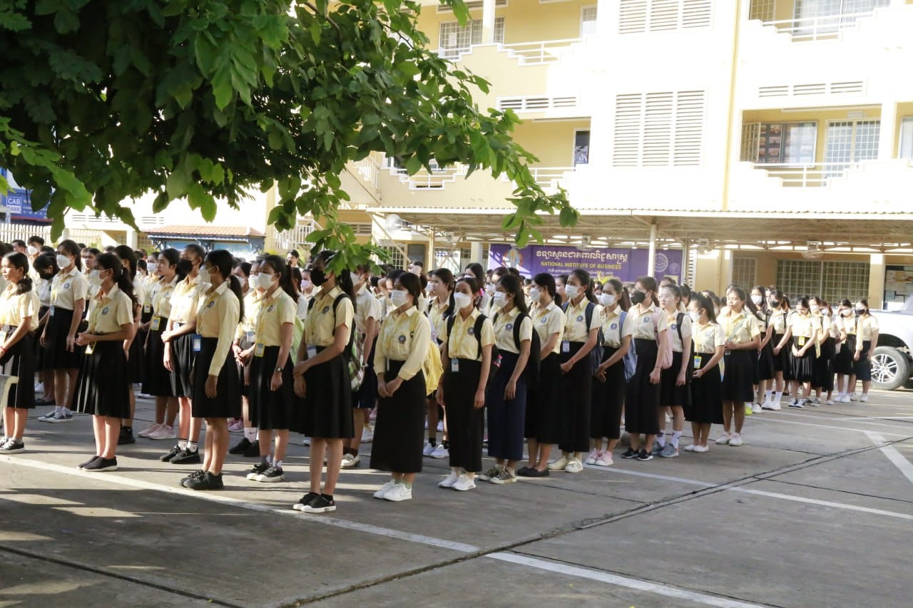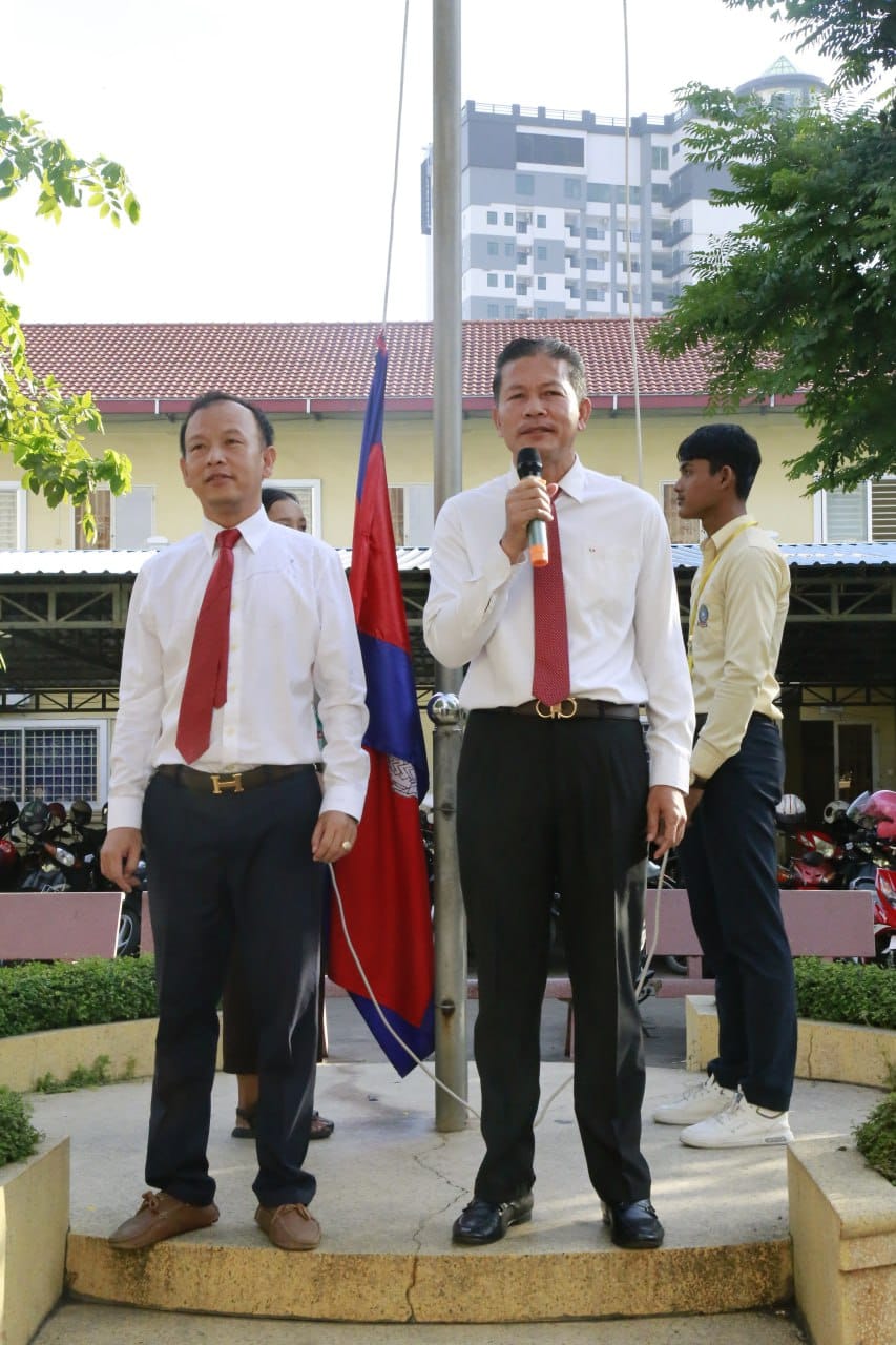ឯកឧត្តម តឹប អឿន នាយកវិទ្យាស្ថានជាតិពាណិជ្ជសាស្រ្ត បានដឹកនាំមន្រ្តីរាជការ លោកគ្រូ អ្នកគ្រូ និងនិស្សិតនៃវិទ្យាស្ថានជាតិពាណិជ្ជសាស្រ្ត គោរពទង់ជាតិនៃព្រះរាជាណាចក្រកម្ពុជា