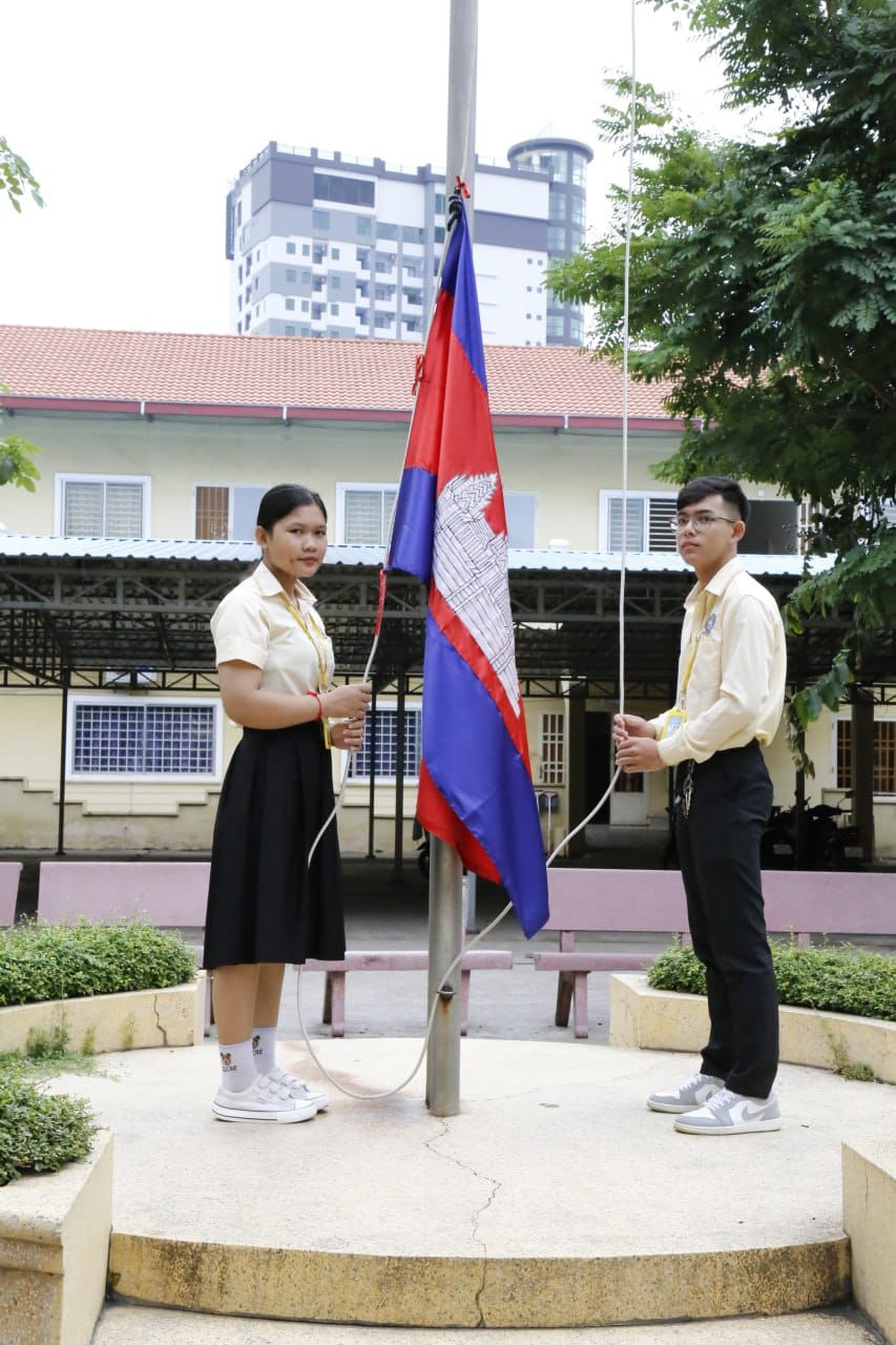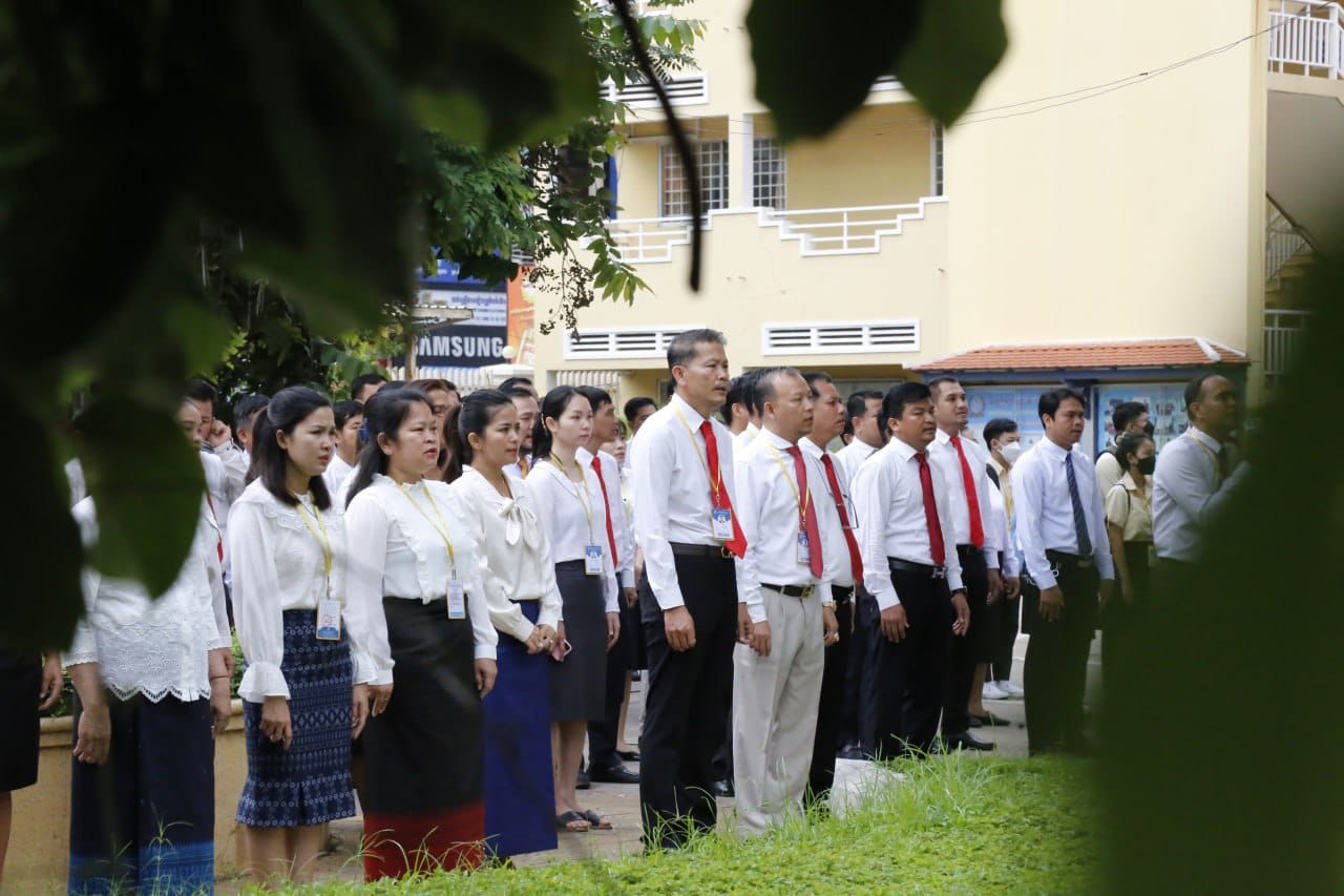 ឯកឧត្តម តឹប អឿន នាយកវិទ្យាស្ថានជាតិពាណិជ្ជសាស្រ្ត បានដឹកនាំមន្រ្តីរាជការ លោកគ្រូ អ្នកគ្រូ និងនិស្សិតនៃវិទ្យាស្ថានជាតិពាណិជ្ជសាស្រ្ត គោរពទង់ជាតិនៃព្រះរាជាណាចក្រកម្ពុជា