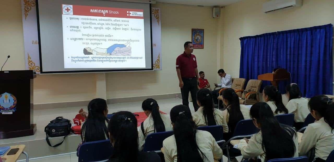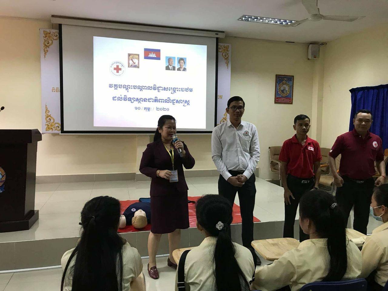 On Monday, March 2, 2020, Cambodian Red Cross Youth members at the National Institute of Commerce receive a First Aid Training led by Red Cross Officer, Ms. Ou Prum Sotheary, Deputy director and 50 Red Cross youth members of the Institute attended For the purpose of studying First Aid for more information.