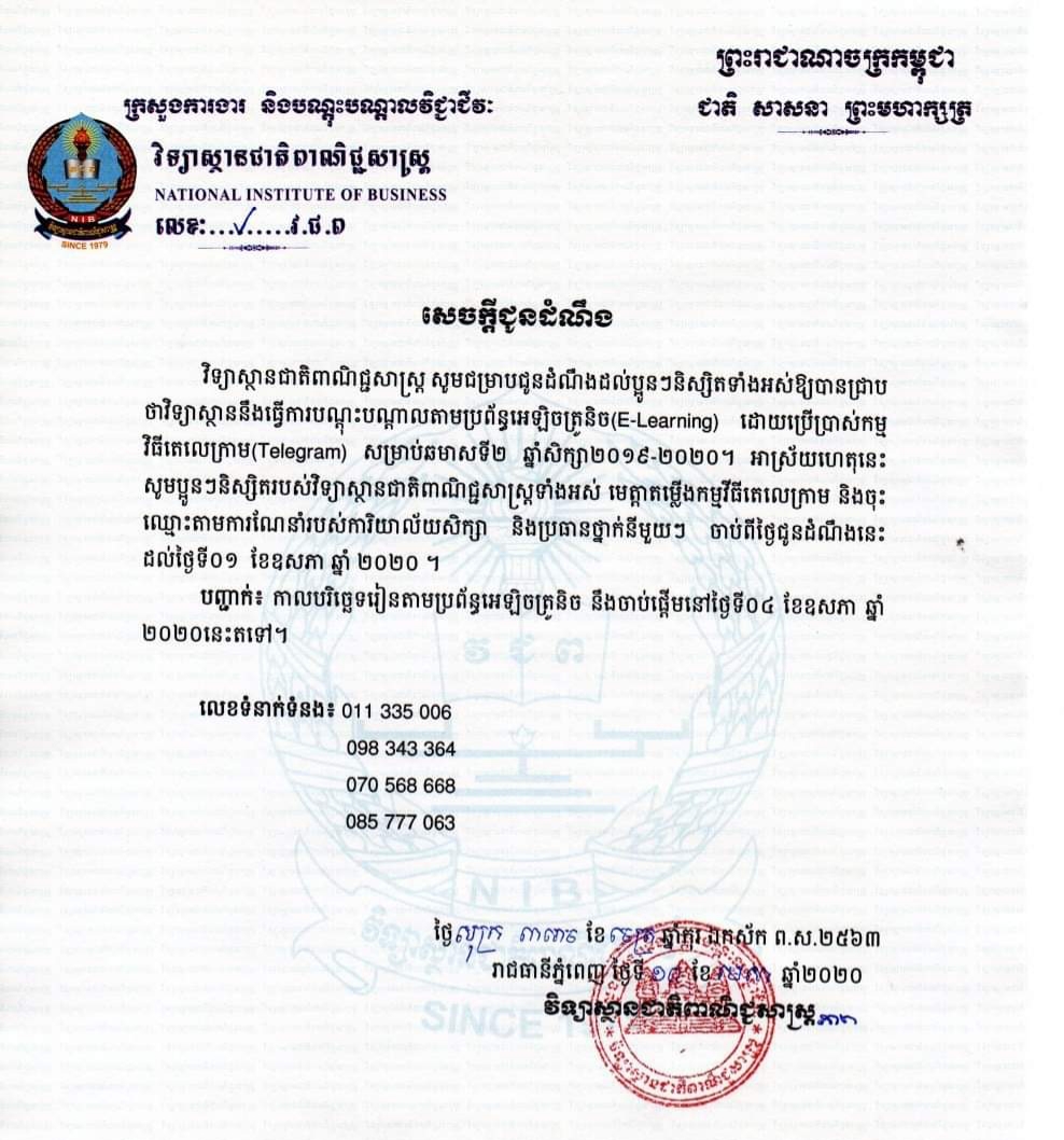 To inform the students who have passed the exams in previous years to know that the institute will begin registering for the new school year 2018-2019 and will attend the lastest on December 03rd, 2018 and so on .......