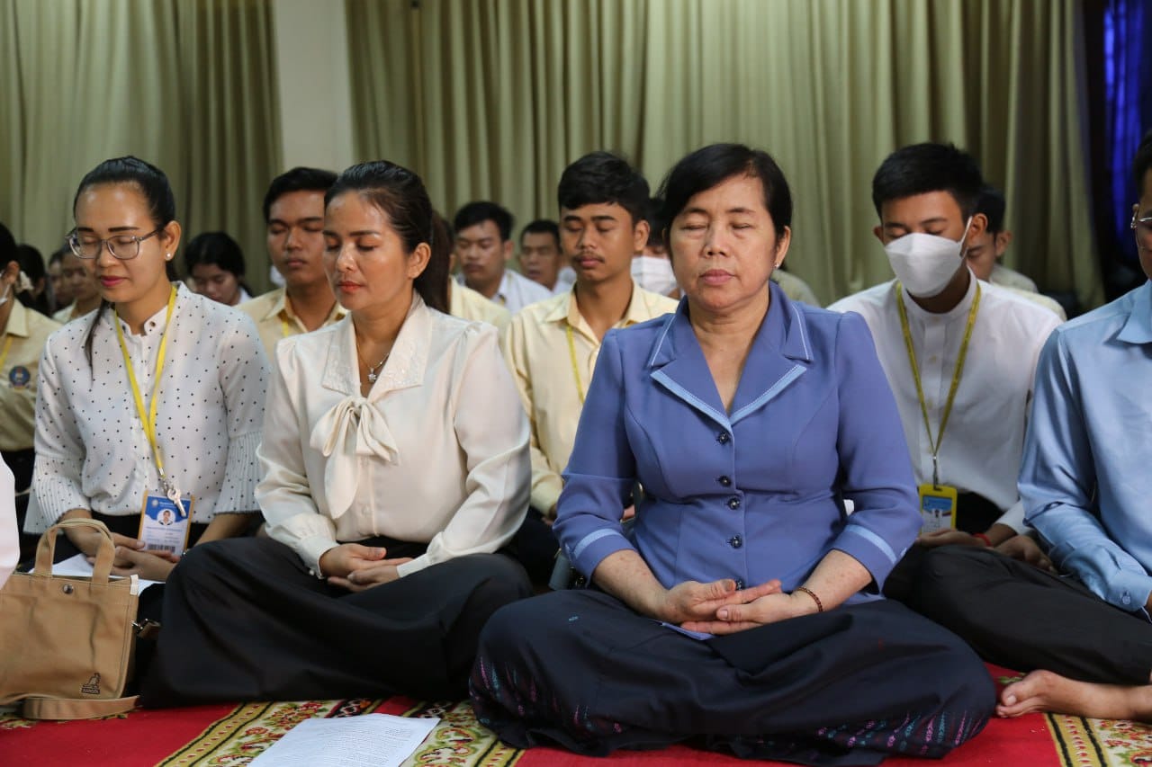 On the morning of Thursday, September 7, 2023, the National Institute of Commerce invited Mongkul Panha Mony Chhoeun Chhouk to be the Honorary King and Dharmador of Dangkor District and the Chief Inspector of Chamkar Khsach Pagoda in Khan. Dangkor, Phnom Penh, came to hold a social moral education ceremony and give advice, including meditation to the leaders, civil servants, teachers and students of the National Institute of Business.