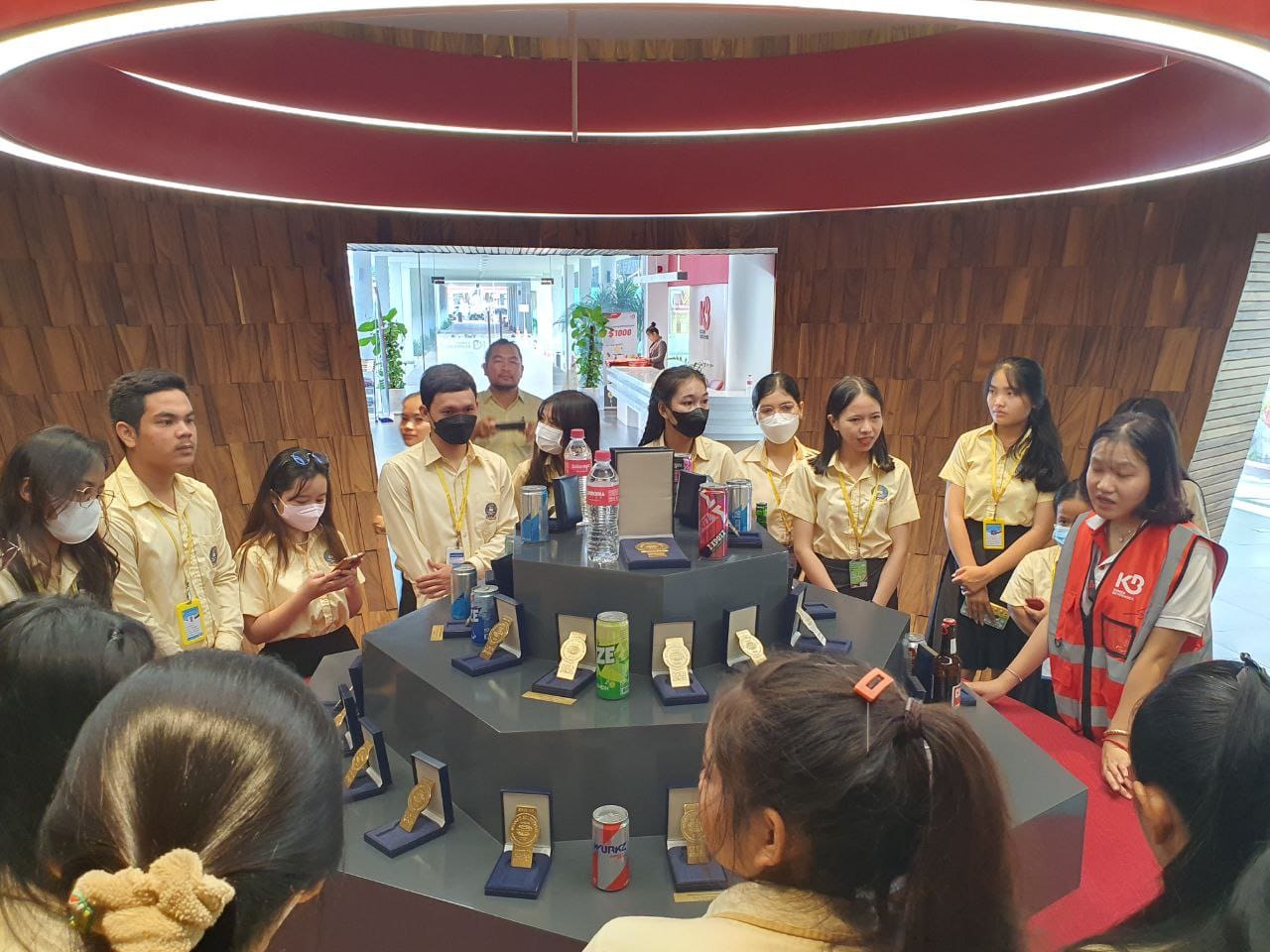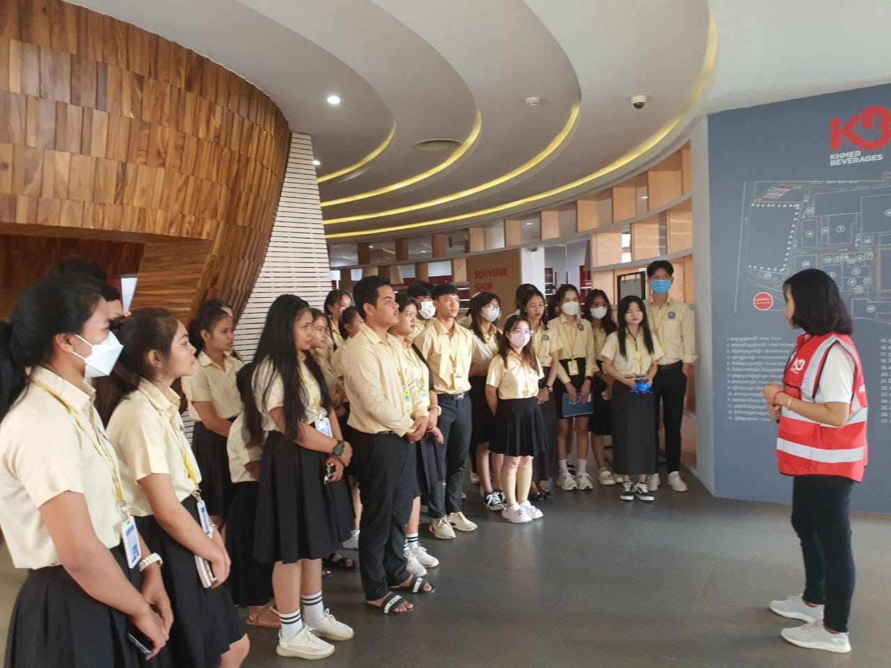 Mr. Nguon Leakhanak Head of Department of Marketing and Officer of the Office of Institutional-Enterprise Relations led the students of the National Institute of Business to visit Khmer Breweries KB