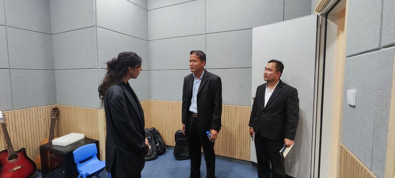 On Thursday, October 19, 2023, HE Tep Oeun, Director of the National Institute of Business, visited the E-learning Studio of the Cambodian Broadcasting Corporation (EBC).