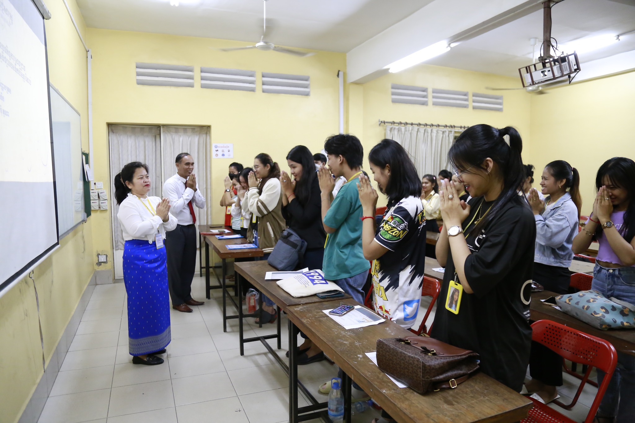 Deputy Director Chhun Vanleng, Deputy Director Ou Prom Sotheary, Deputy Director Srey Pidor and colleagues went to class to educate students in both ethics and soft skills.