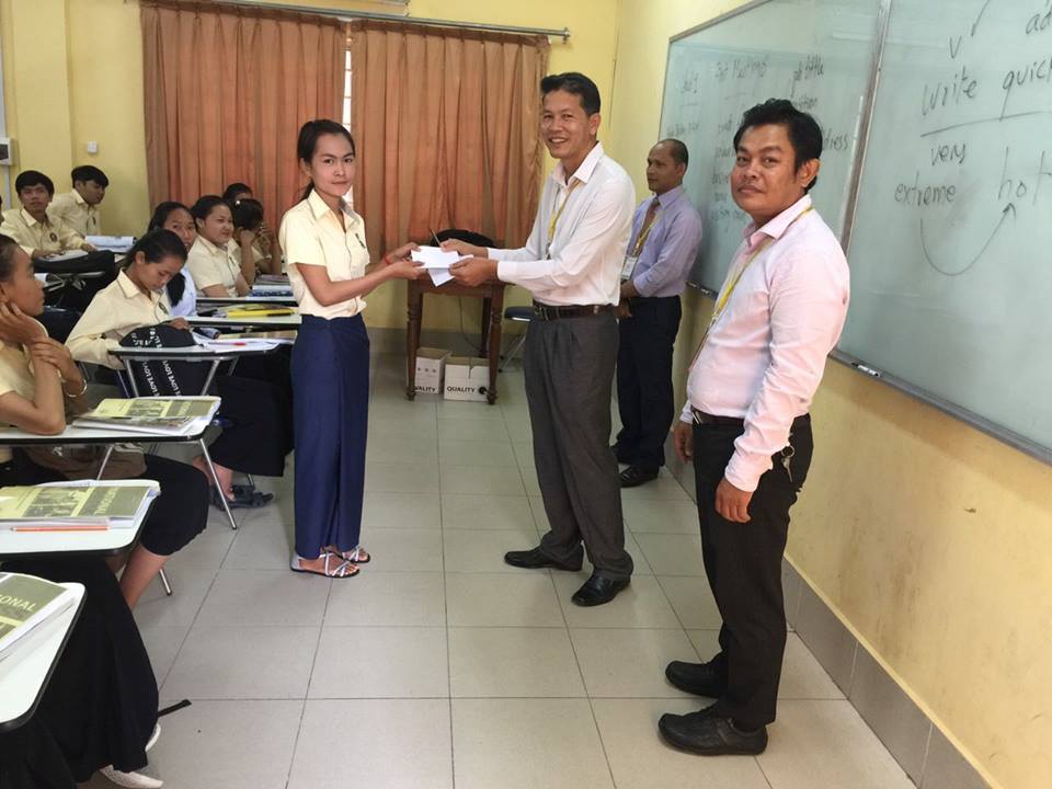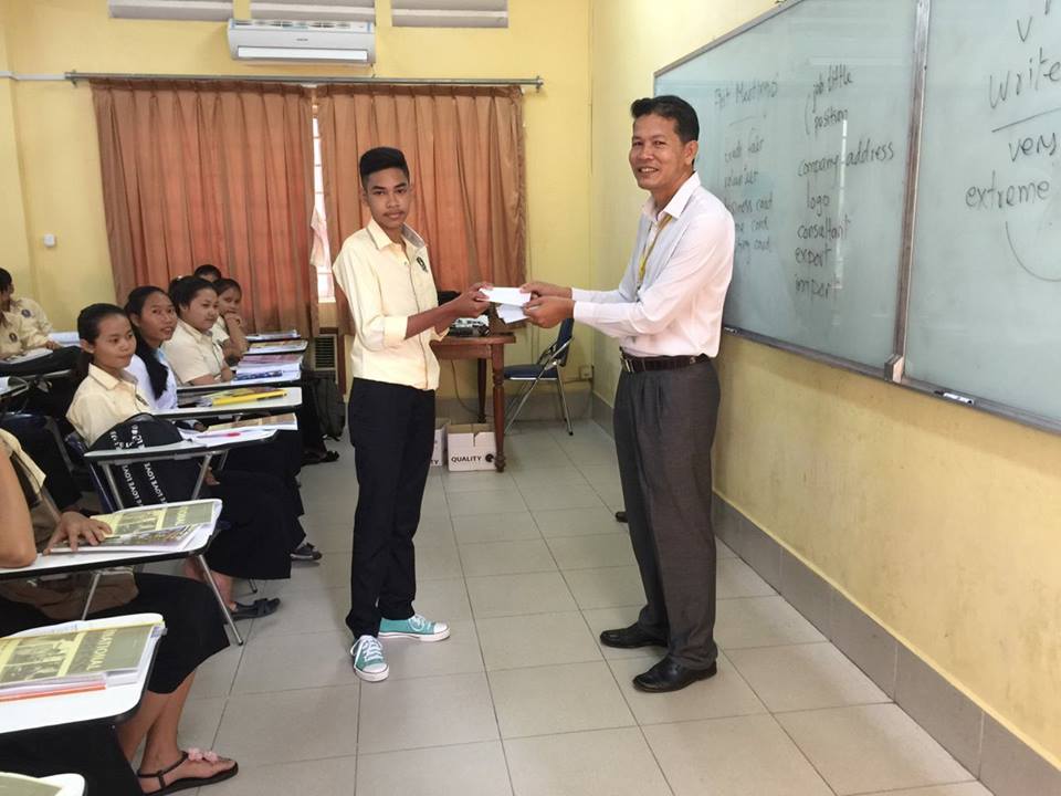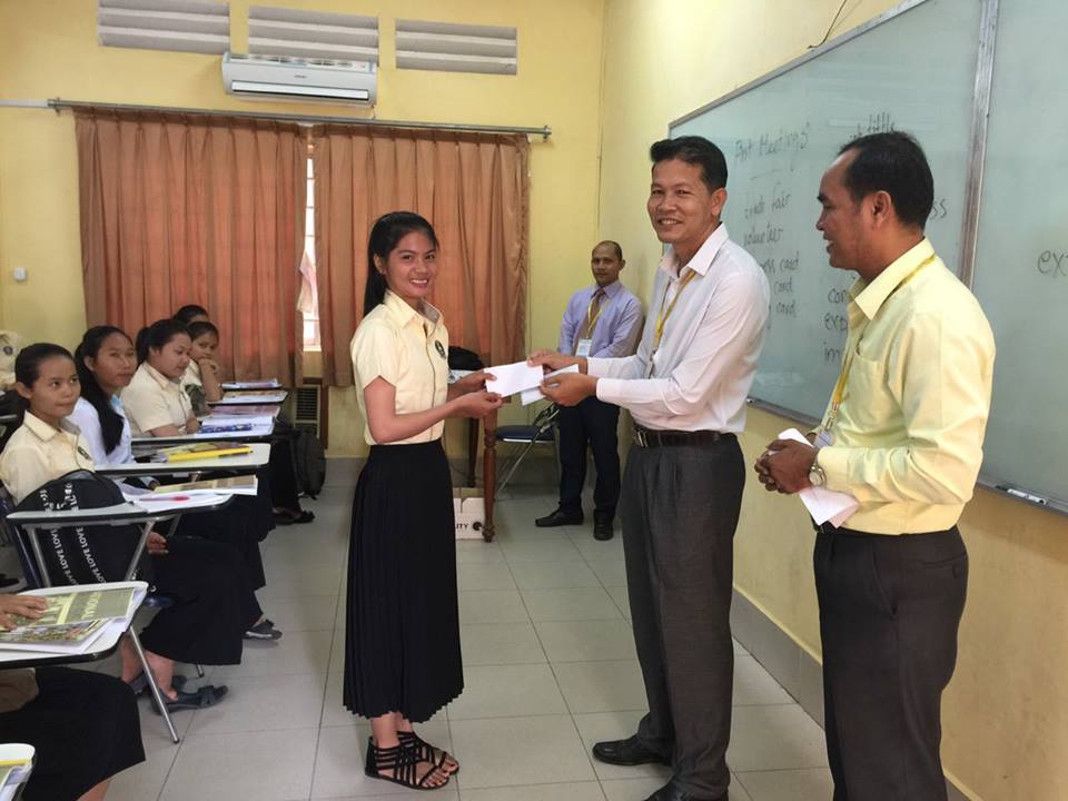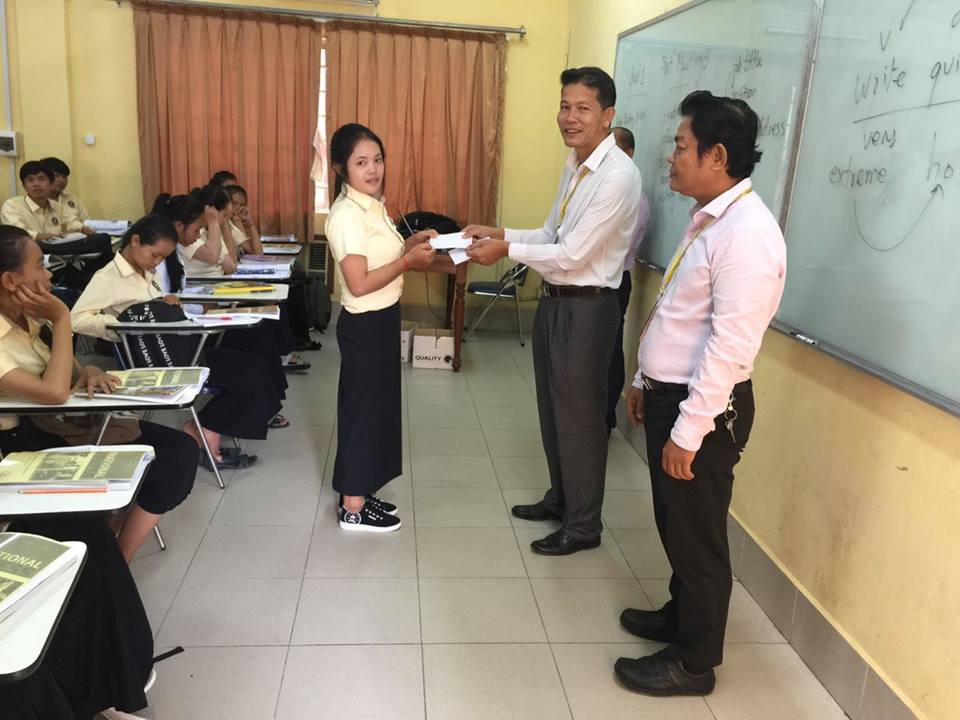 H.E Tep Oeun, Director of National Institute of Business, presented prizes to students