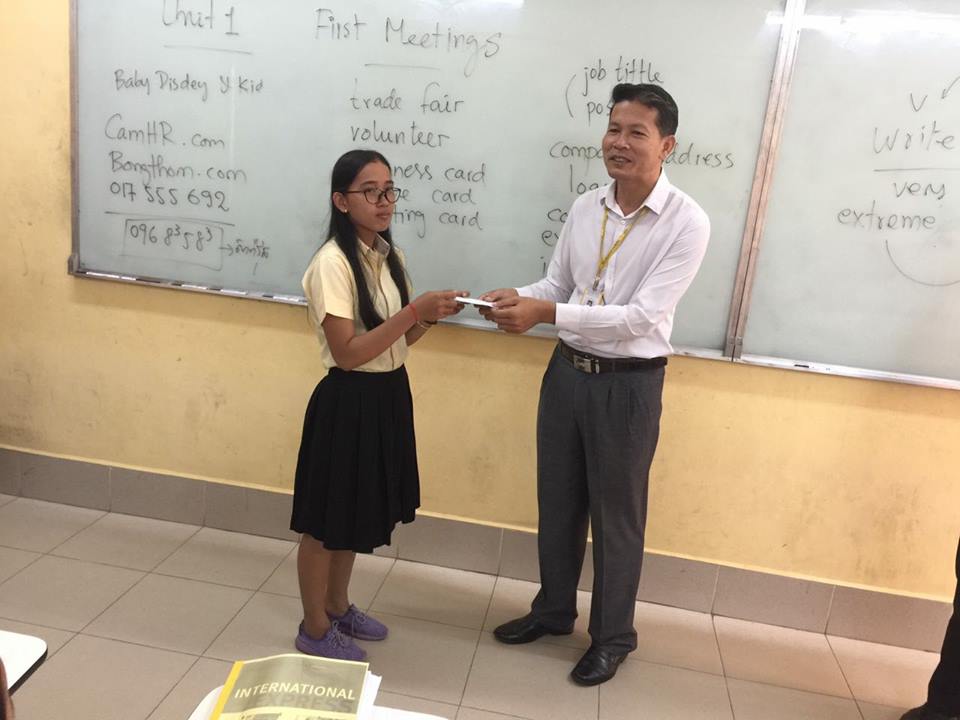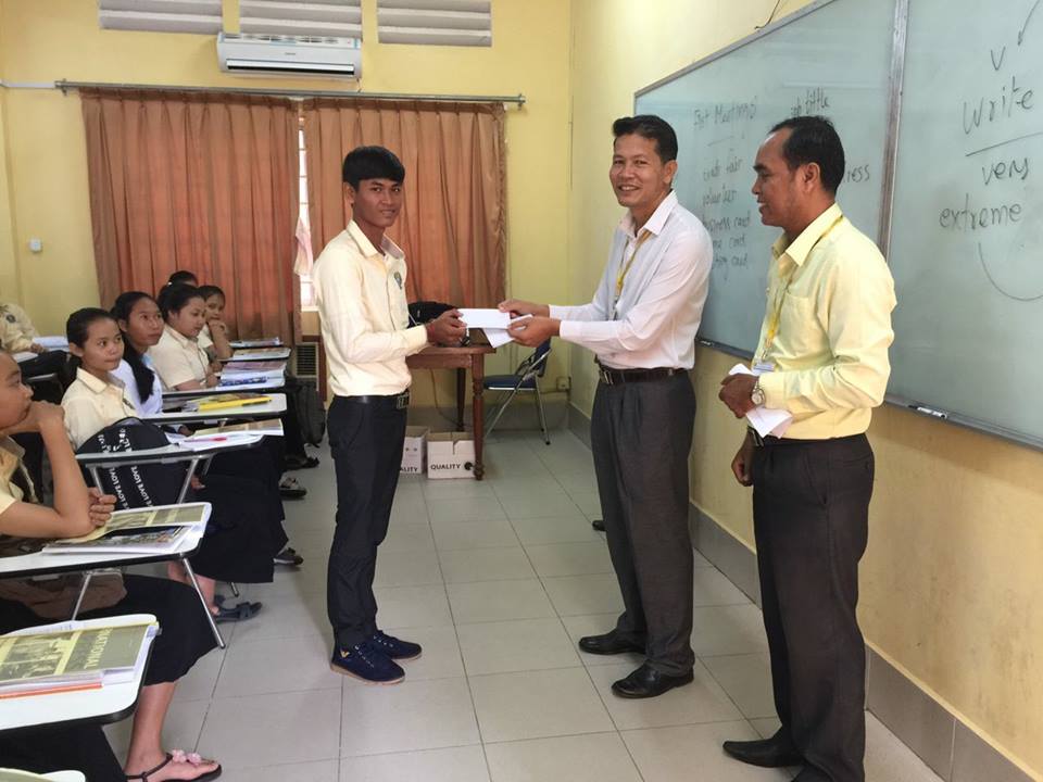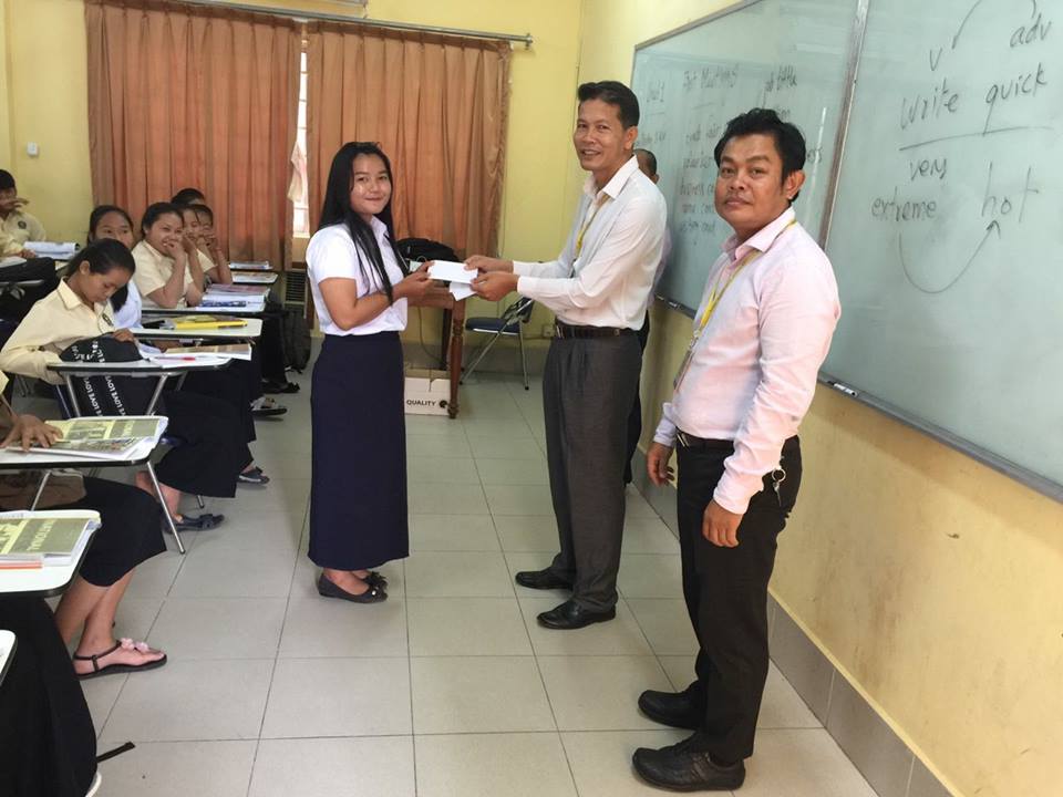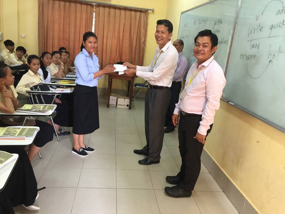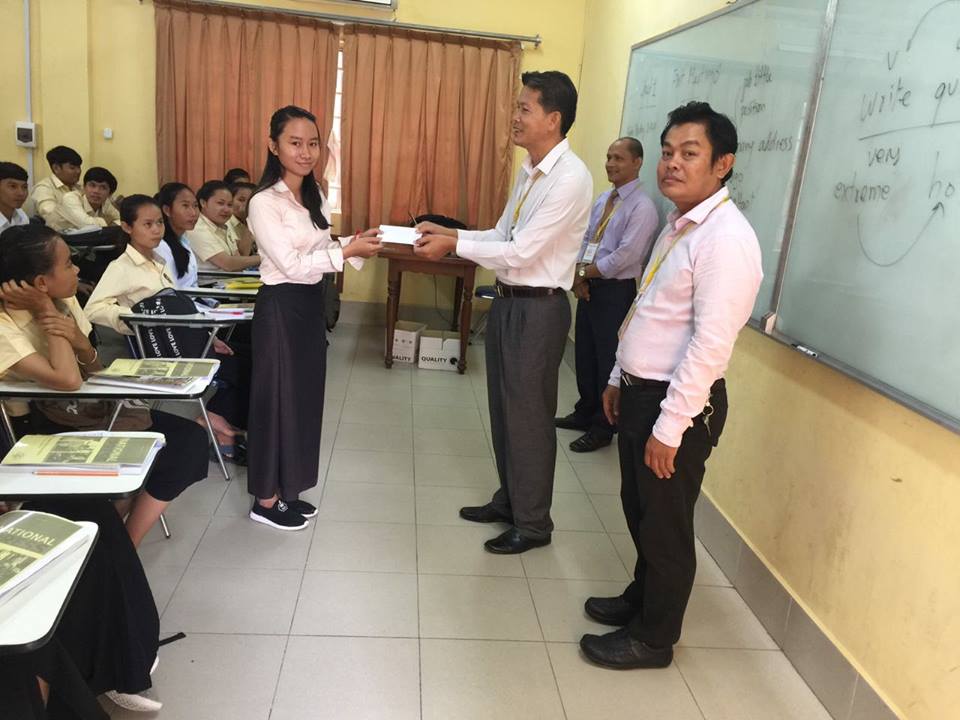 H.E Tep Oeun, Director of National Institute of Business, presented prizes to students