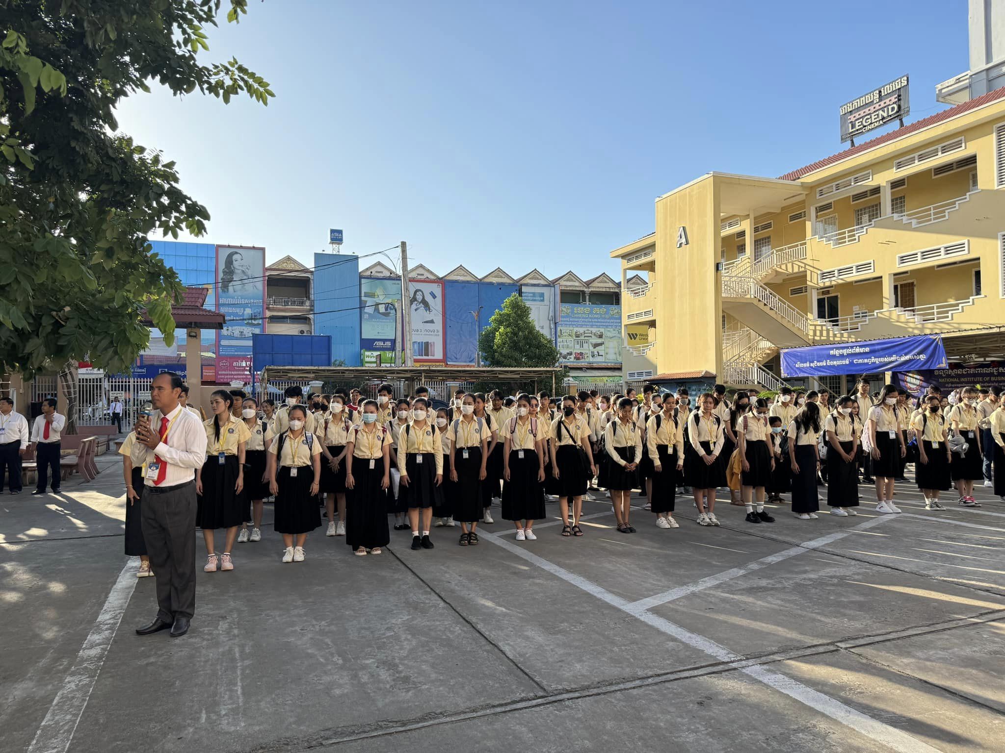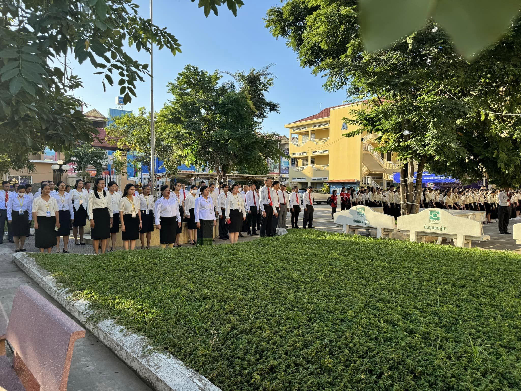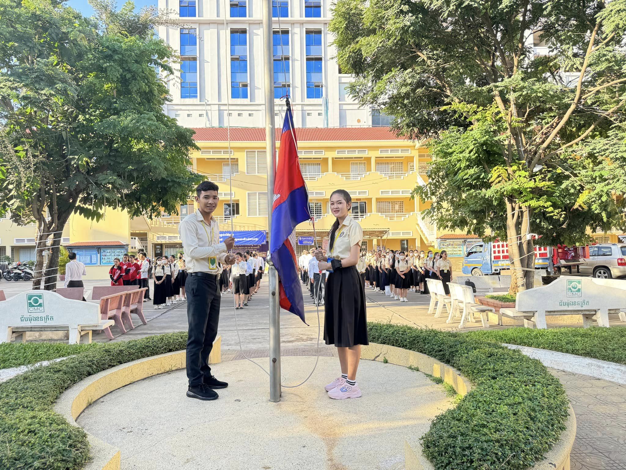 ឯកឧត្តម តឹប អឿន នាយកវិទ្យាស្ថានជាតិពាណិជ្ជសាស្រ្ត បានដឹកនាំមន្រ្តីរាជការ លោកគ្រូ អ្នកគ្រូ និងនិស្សិតនៃវិទ្យាស្ថានជាតិពាណិជ្ជសាស្រ្ត គោរពទង់ជាតិនៃព្រះរាជាណាចក្រកម្ពុជា