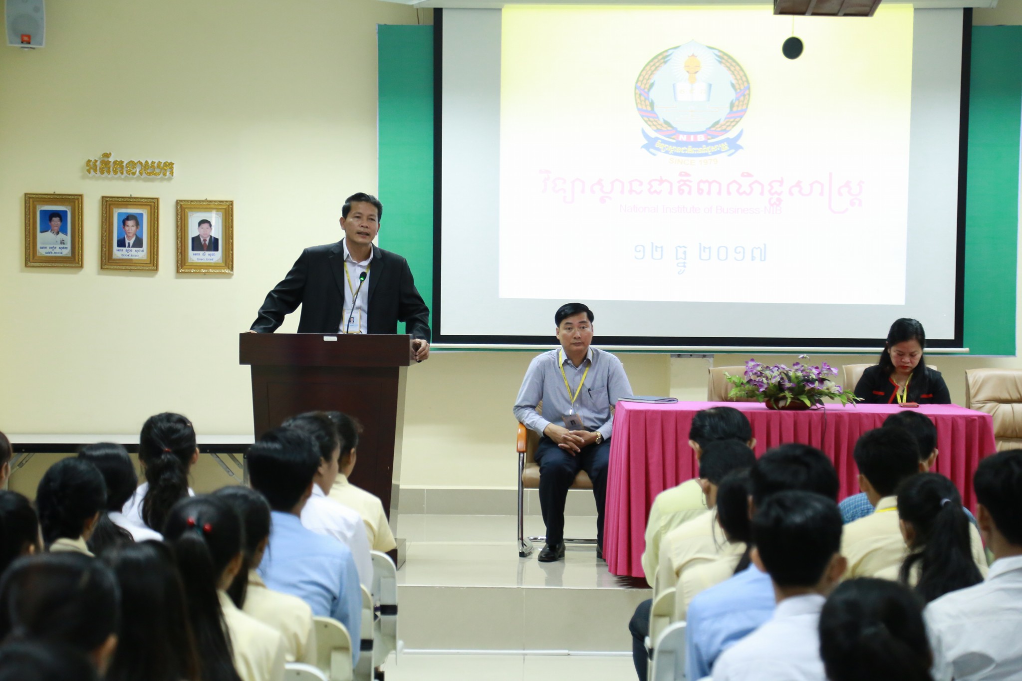 On Tuesday, December 12, 2017, National Institute of Business Administration held the opening ceremony of a new academic year 2017-2018 under the presidency of H.E Tep Oeun, Director of the institute. At the ceremony, H.E had a friendly talk with the students who came to receive higher education at the institute and gave them good ideas and good recommendations. Finally, the institute also distributed certificates to NIB students who competed in the field of information technology.