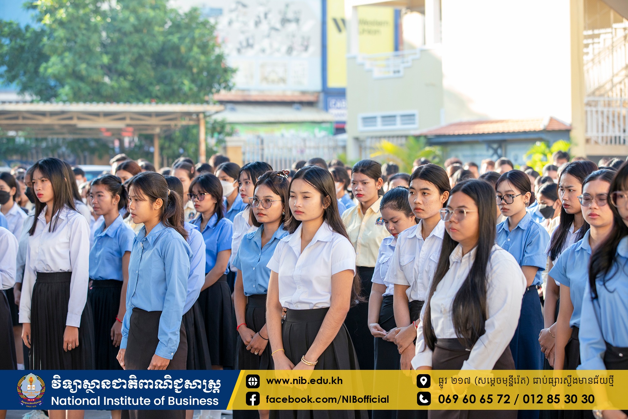 ថ្ងៃចន្ទ ១១កើត ខែមិគសិរ ឆ្នាំម្សាញ់ សប្តស័ក ពុទ្ធសករាជ ២៥៦៩ ត្រូវនឹងថ្ងៃទី១ ខែធ្នូ ឆ្នាំ២០២៥ ឯកឧត្តម តឹប អឿន នាយកវិទ្យាស្ថានជាតិពាណិជ្ជសាស្រ្ត បានដឹកនាំមន្រ្តីរាជការ លោកគ្រូ អ្នកគ្រូ និស្សិតនិងសិក្ខាកាម នៃវិទ្យាស្ថានជាតិពាណិជ្ជសាស្រ្ត គោរពទង់ជាតិនៃព្រះរាជាណាចក្រកម្ពុជានិងស្មឹងស្មាធគោរពវិញ្ញាណក្ខន្ធព្រះបាទជ័យវរ្ម័នទី៧និងបុព្វបុរសខ្មែរគ្រប់ៗរូប។