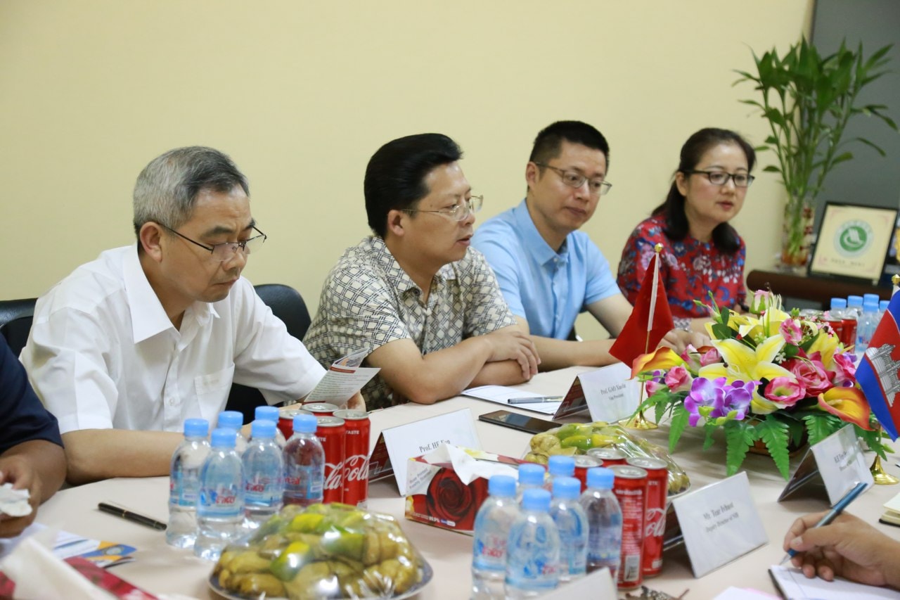 On Tuesday afternoon, 1 March, 2019 was held on July 2, 2019 at the Small Hall of the National Institute of Business, His Excellency TEP Oeun, Director of the National Institute of Business and the Management Board of the Institute welcomed the Chinese delegation. Four participants from the SUSE University of China.