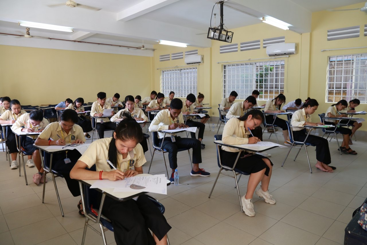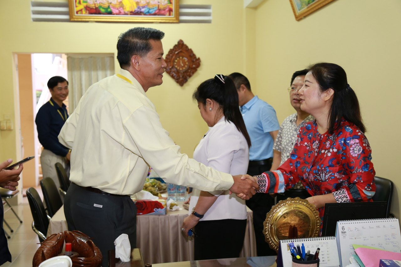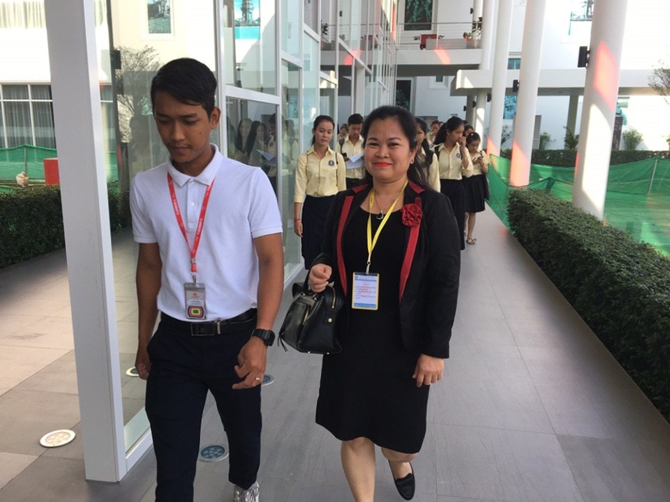 HE Tep Oeun, Director of the National Institute of Business and including Red Cross students, brought the NIB fund to Student Din Chansereyreach