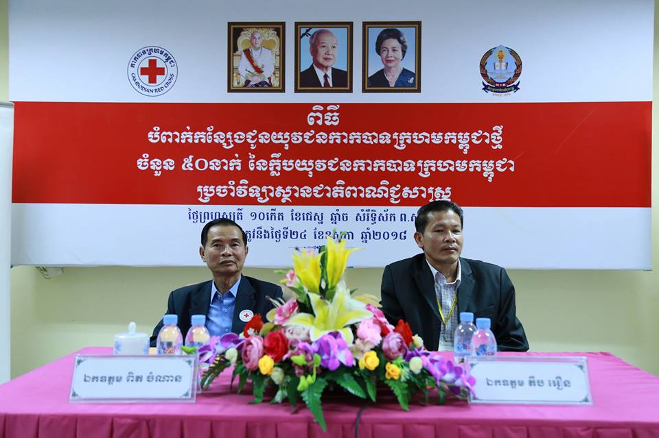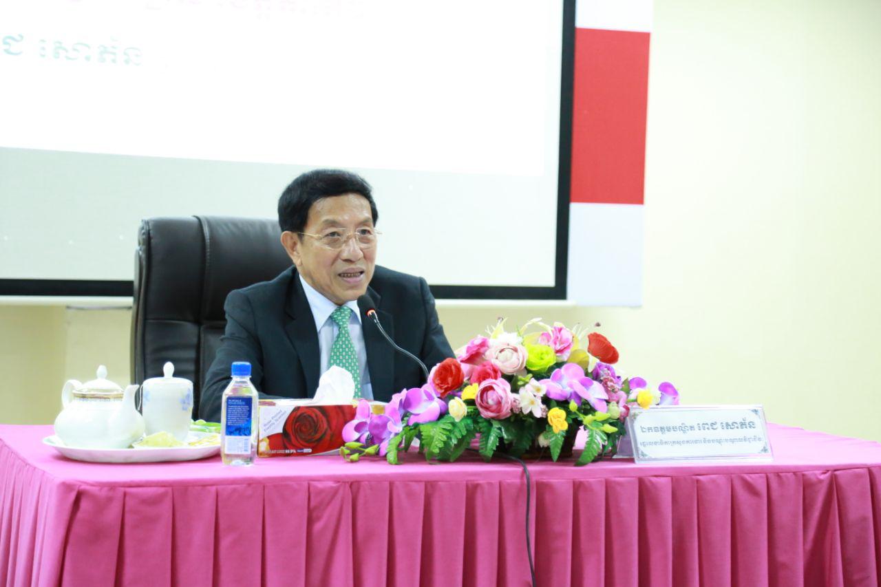 On the morning of Tuesday, May 29, 2018, HE Dr. Pich Sophoan, Secretary of State of the Ministry of Labor and Vocational Training, presided over a meeting with officials, staffs, teacher of the National Institute of Business, and teachers and students of Krang Sla High School from Char Commune, Preykabas District, Takeo Province.